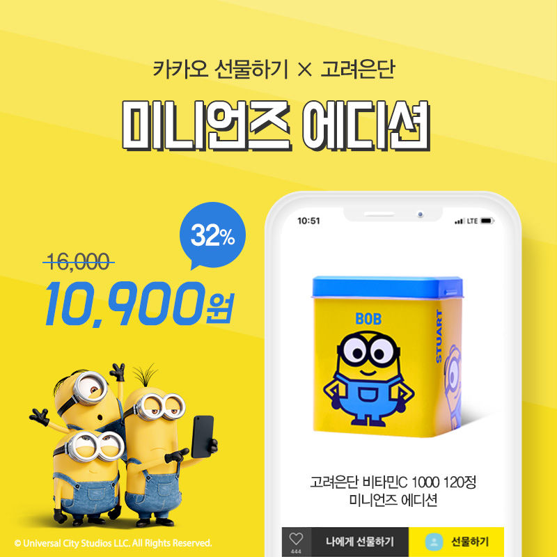[고려은단] 고려은단 비타민C 1000 미니언즈 에디션, 카카오톡 선물하기 할인 이벤트 진행